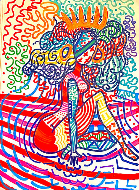 My art is expressed through paintings, using a mix of acrylic paint and artist markers, including double-headed markers and sharpies. My work often reflects my pain and my desire to stand apart. I create in solitude, letting my emotions flow freely onto the canvas. Whether surrounded by music, candles, or the outdoors, I seek anything that allows my creativity to flow effortlessly, without overthinking.